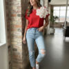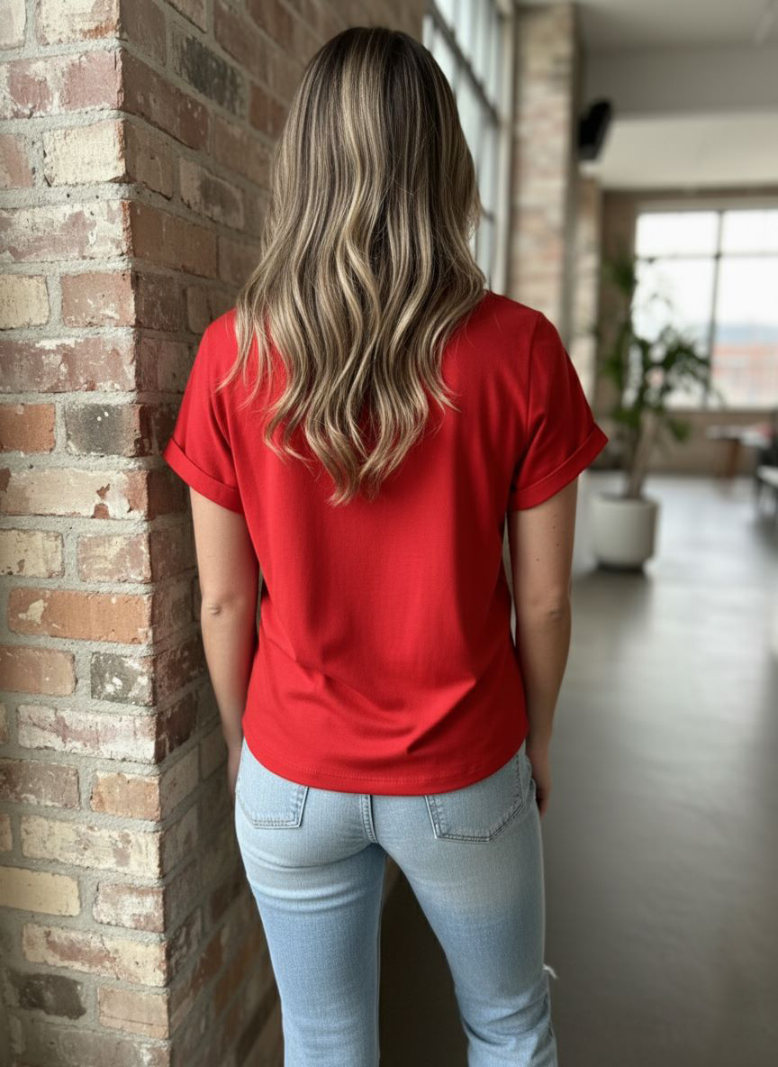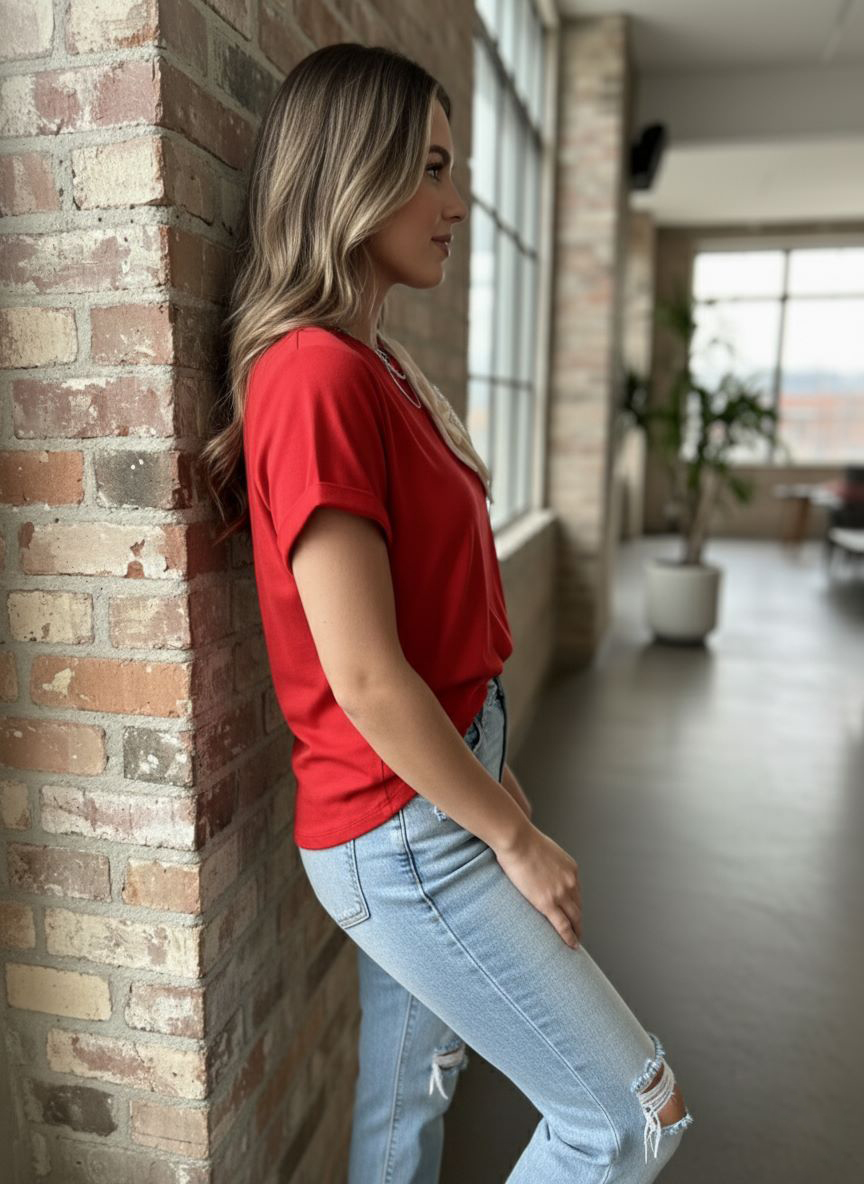 Make a statement with this chic T-shirt, featuring a stunning pearl-embroidered patch on the shoulder for that touch of effortless glam. With rolled sleeves and a sleek medium length, it’s the perfect blend of elegance and edge—made to shine on any occasion.