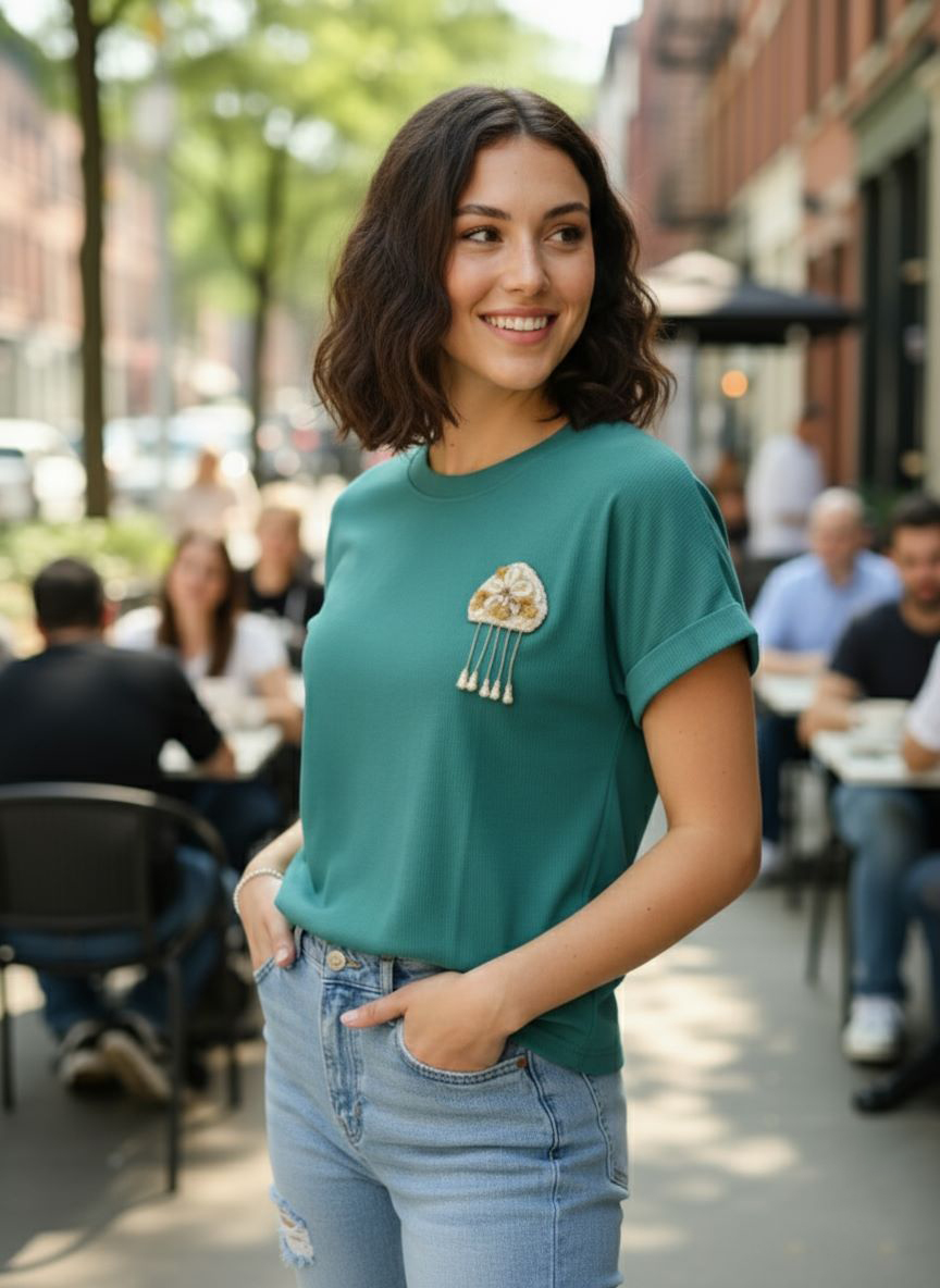 This shell patch t-shirt brings a touch of the coast to your everyday style. Featuring detailed embroidery and a relaxed fit, it’s perfect for beach days or laid-back looks with a hint of wanderlust.