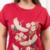 Cranes In Bloom 3D Graphic printed Pearl Detailing T-shirt Cranes In Bloom 3D Graphic printed Pearl Detailing T-shirt