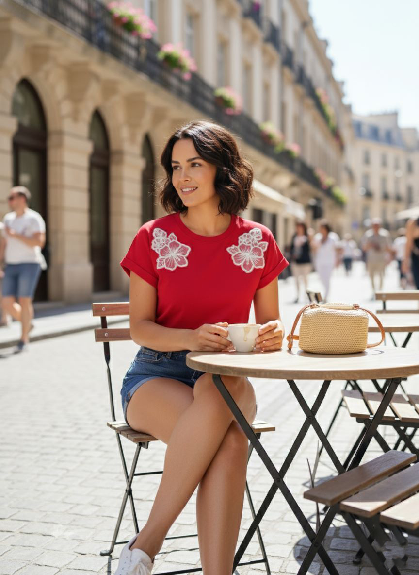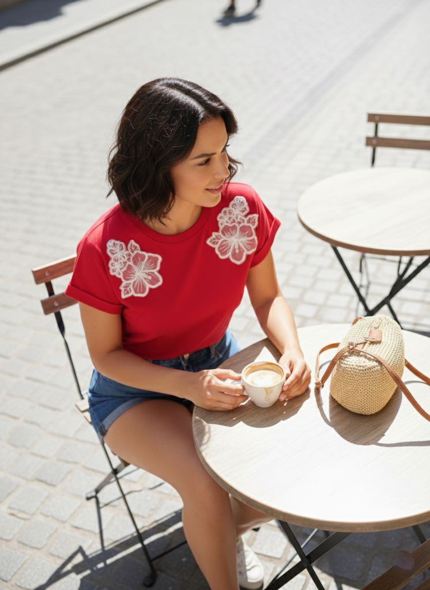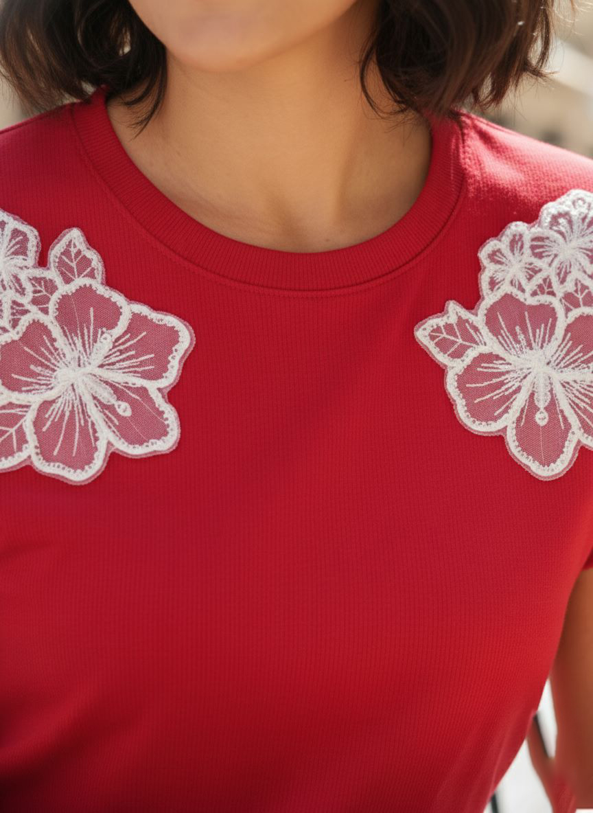 Elevate your style with our embroidered net flower patch t-shirt. Featuring delicate net detailing intertwined with floral embroidery, this tee offers a unique blend of texture and elegance. Perfect for adding a subtle yet sophisticated touch to your everyday look.