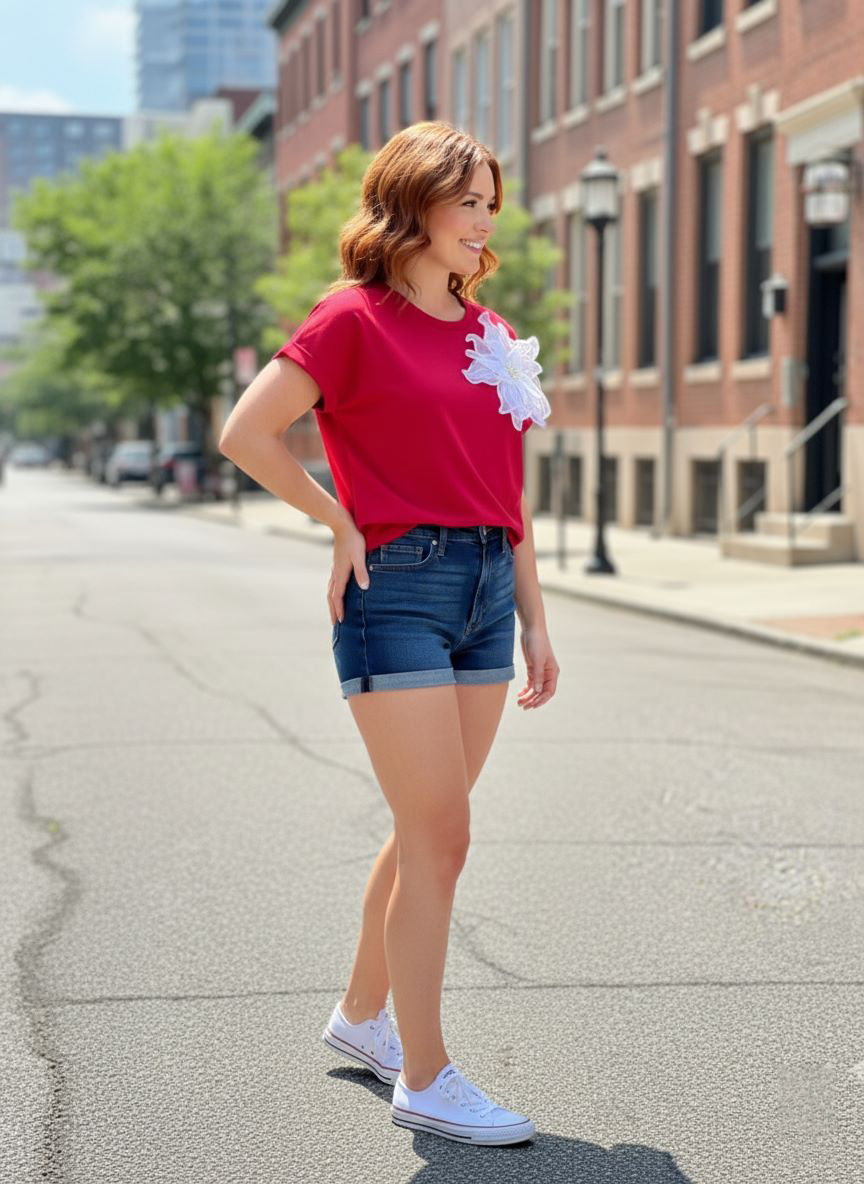 This flower patch t-shirt features delicate embroidered details that add a soft, artistic touch to your everyday look. Crafted for comfort and made to stand out, it’s the perfect blend of nature and streetwear.